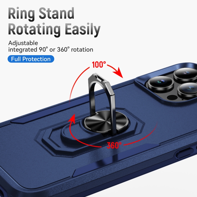 Funda de teléfono Pioneer Armor para iPhone 16 Pro resistente PC y TPU con soporte (Azul)