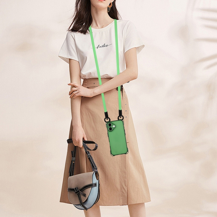 Funda TPU a Prueba de Golpes con Cuatro Esquinas y Cordón para iPhone 16 (Verde)
