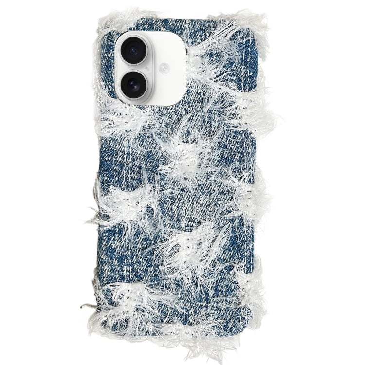 Funda TPU iPhone 16 Diseño Mezclilla y Camellia (Azul)