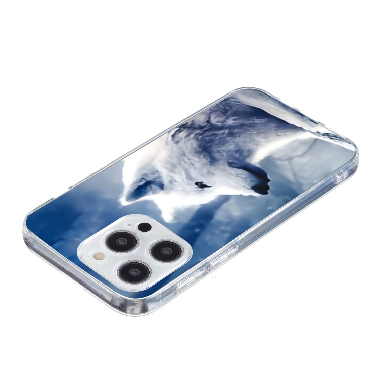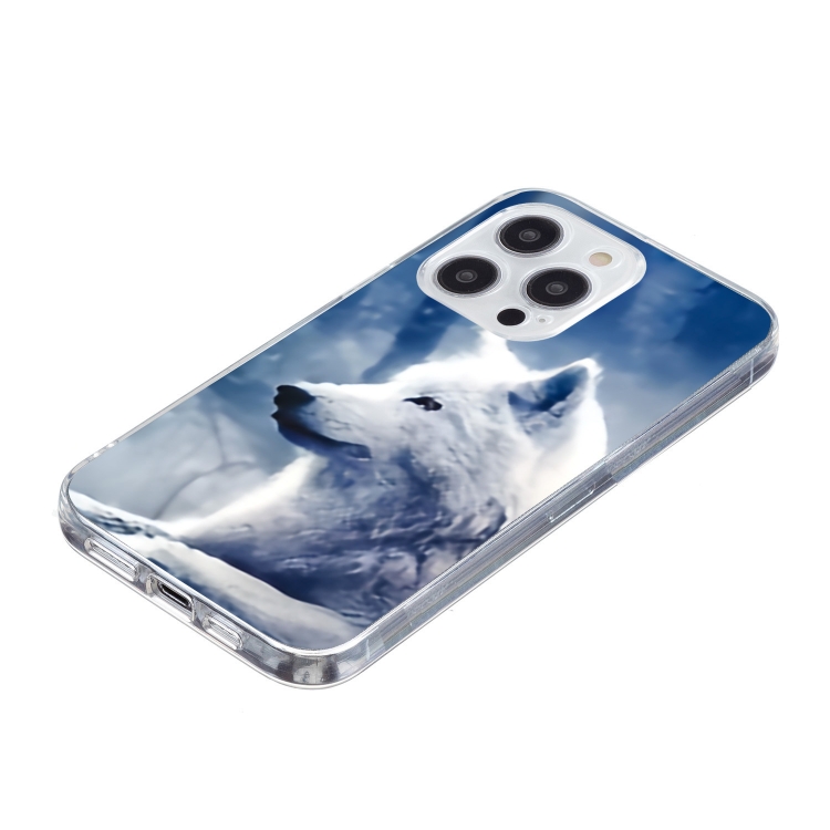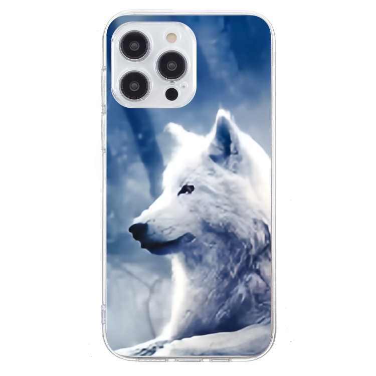 Funda TPU para iPhone 16 Pro Max con Patrón de Pintura Colorida (Lobo Blanco)