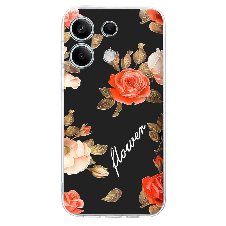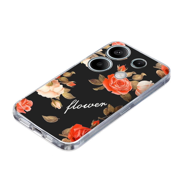 Funda de TPU con Patrón de Pintura Colorida para Redmi Note 13 Pro 5G (Flores En Negro)