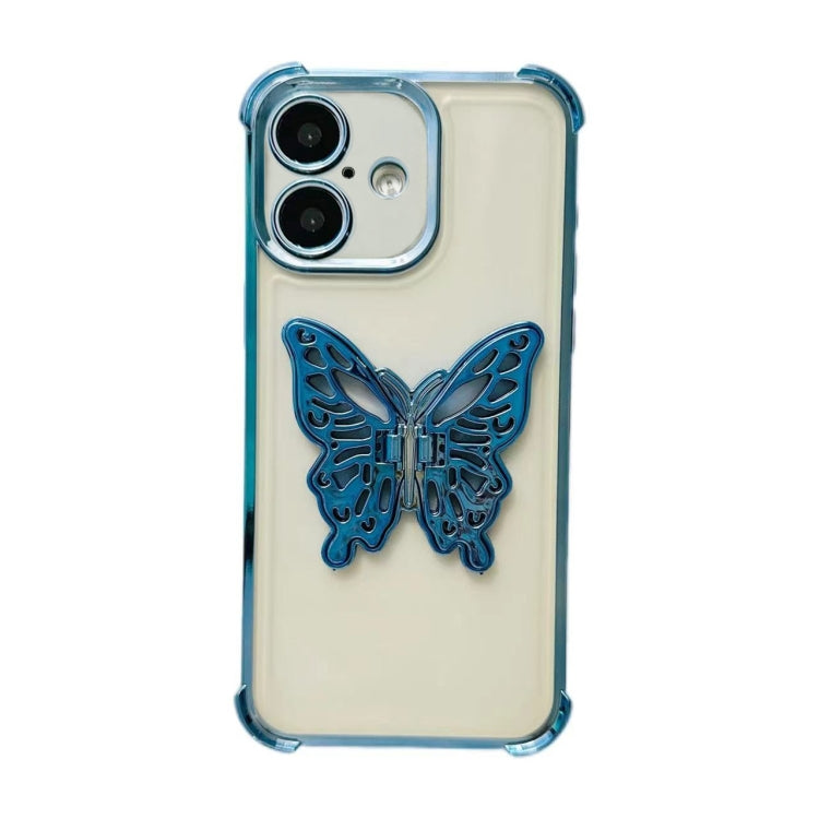Funda TPU con Soporte Mariposa 3D Galvanizada para iPhone 16 (Azul)
