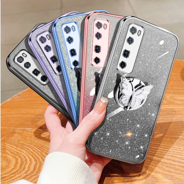 Funda TPU con Soporte Mariposa Purpurina Degradada para Huawei Nova 7 Pro (Negra)
