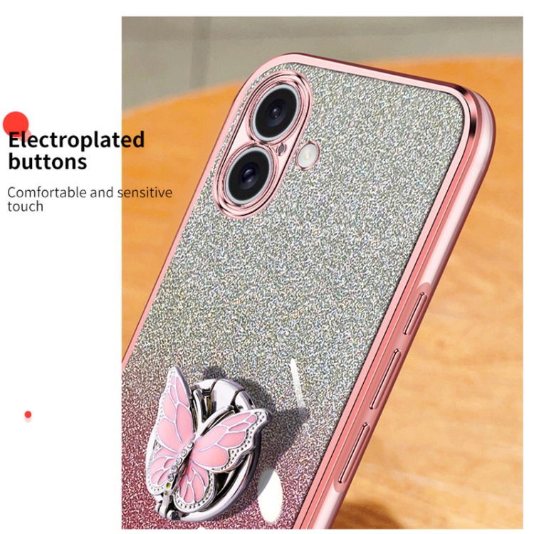 Funda TPU con Soporte Mariposa Purpurina Degradada para iPhone 16 (Negro)