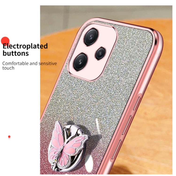 Funda de TPU con Soporte para Mariposa con Purpurina Degradada Plateada para Redmi 12 5G (Negro)