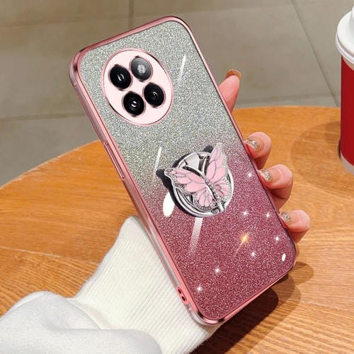 Funda de TPU con Soporte para Teléfono con Diseño de Mariposa y Purpurina En Degradado para Xiaomi Civi 4 Pro (Rosa)