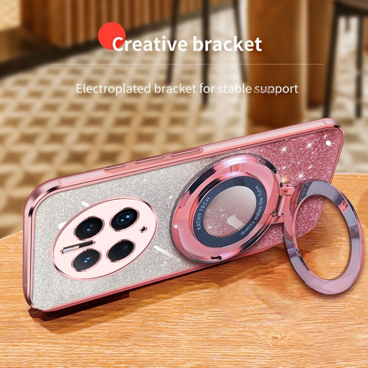 Funda TPU con Soporte Redondo y Purpurina Degradada para Huawei Mate 50 Pro (Rosa)