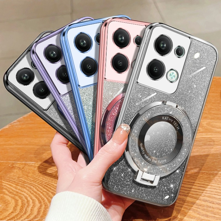 Funda de TPU con Soporte Redondo y Purpurina Degradada para Oppo Reno9 Pro+ (Negra)
