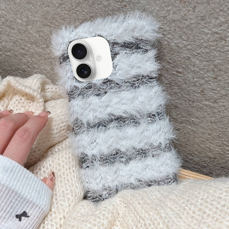 Funda TPU Felpa Tejido a Rayas para iPhone 16 (Gris)