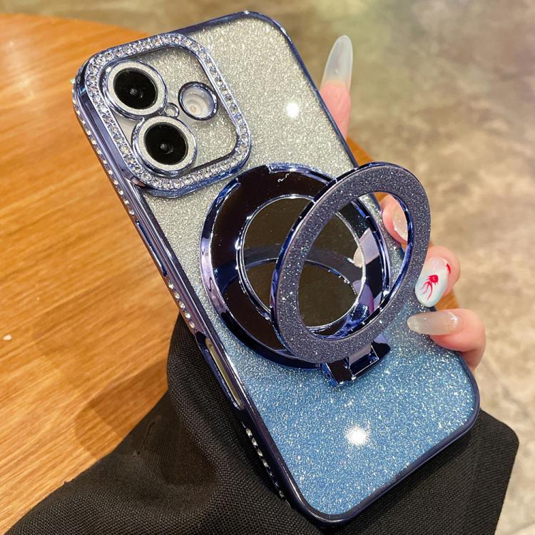 Funda de TPU MagSafe con purpurina y espejo de diamantes de imitación para iPhone 17 (azul sierra)