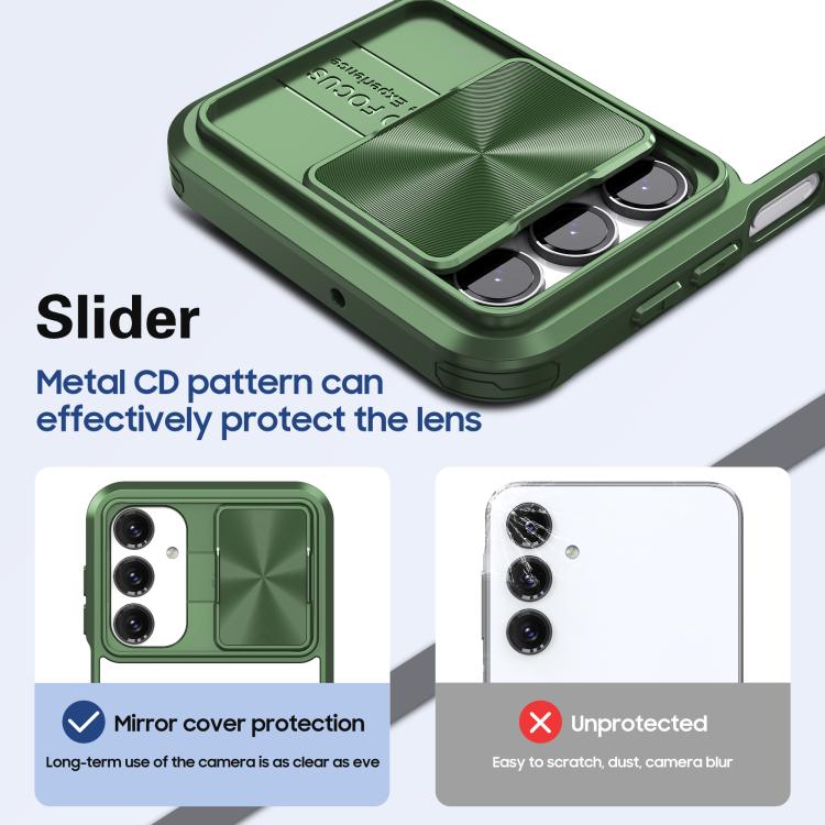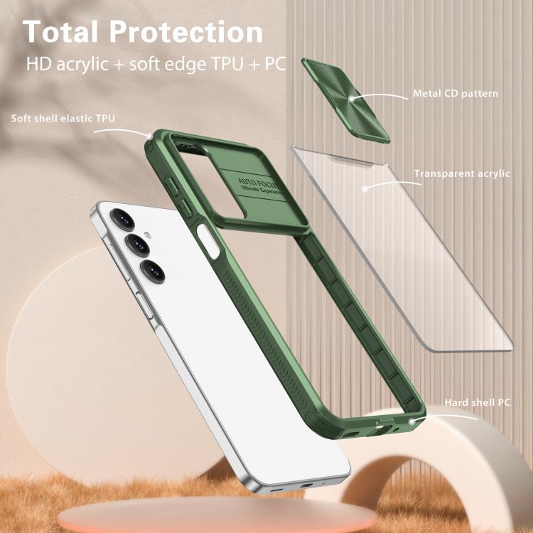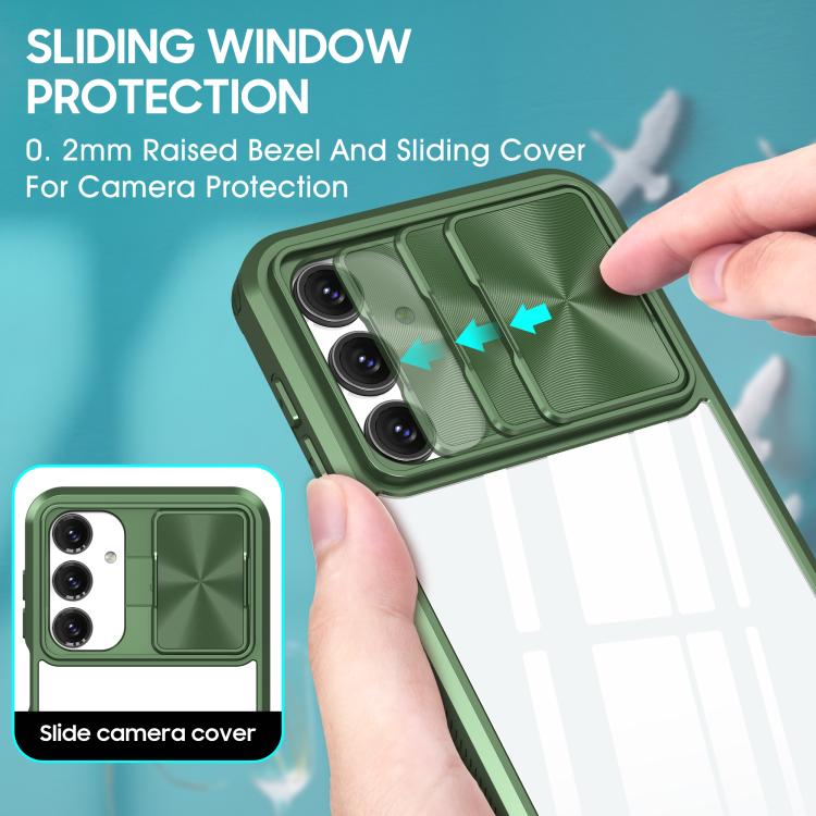 Funda deslizante de acrílico transparente + PC + TPU para Samsung Galaxy A16 5G (verde oliva)