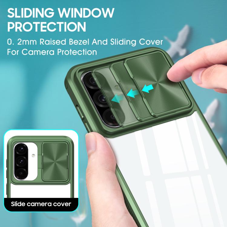 Funda deslizante de acrílico transparente + PC + TPU para Samsung Galaxy A26 5G (verde oliva)