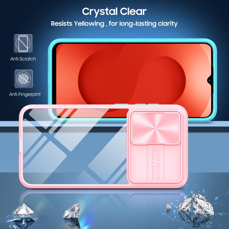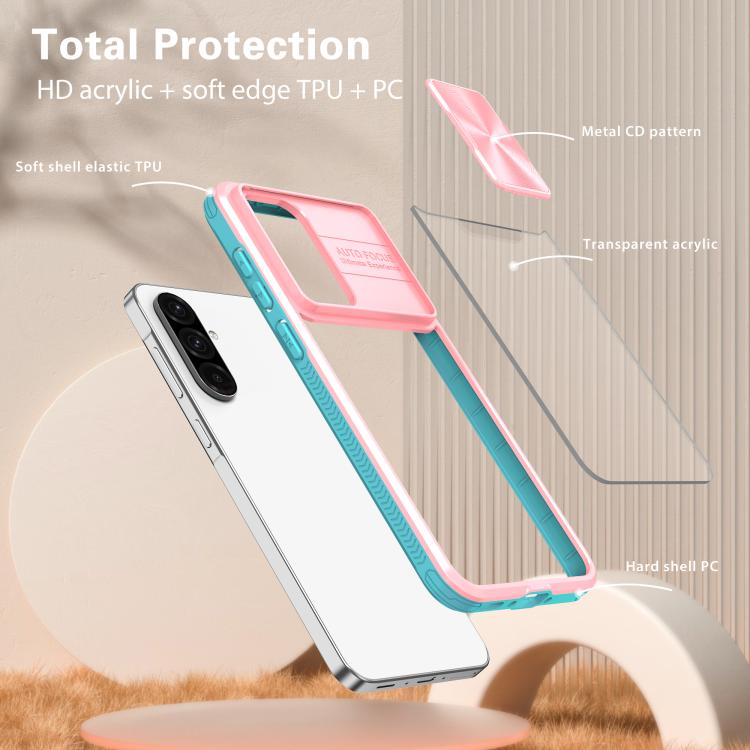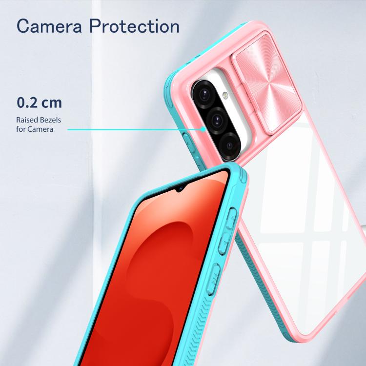 Funda deslizante para Samsung Galaxy A26 5G, de acrílico transparente, PC y TPU, con cobertura total (rosa y cian)