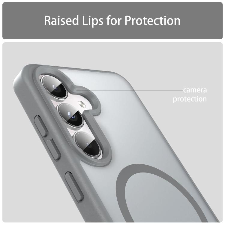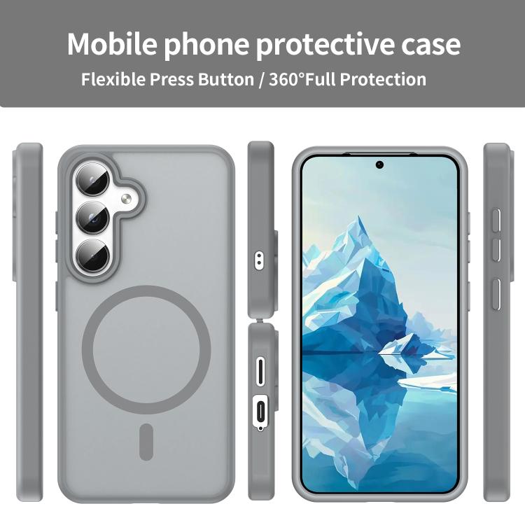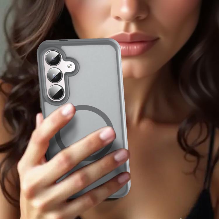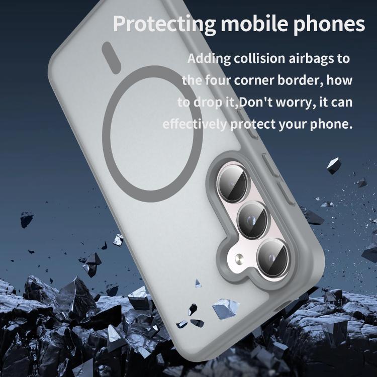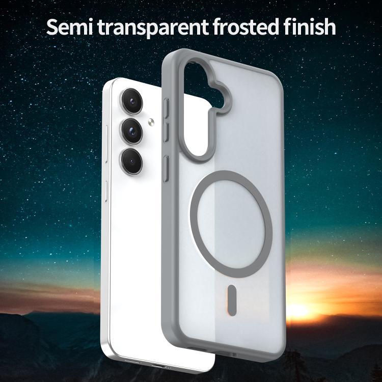 Funda híbrida de PC y TPU translúcida con acabado esmerilado MagSafe para Samsung Galaxy S25 5G (gris plateado)