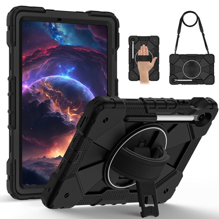 Funda híbrida de silicona con diseño de robot en color de contraste para Samsung Galaxy Tab S10 FE/S9 (negra)