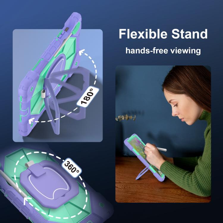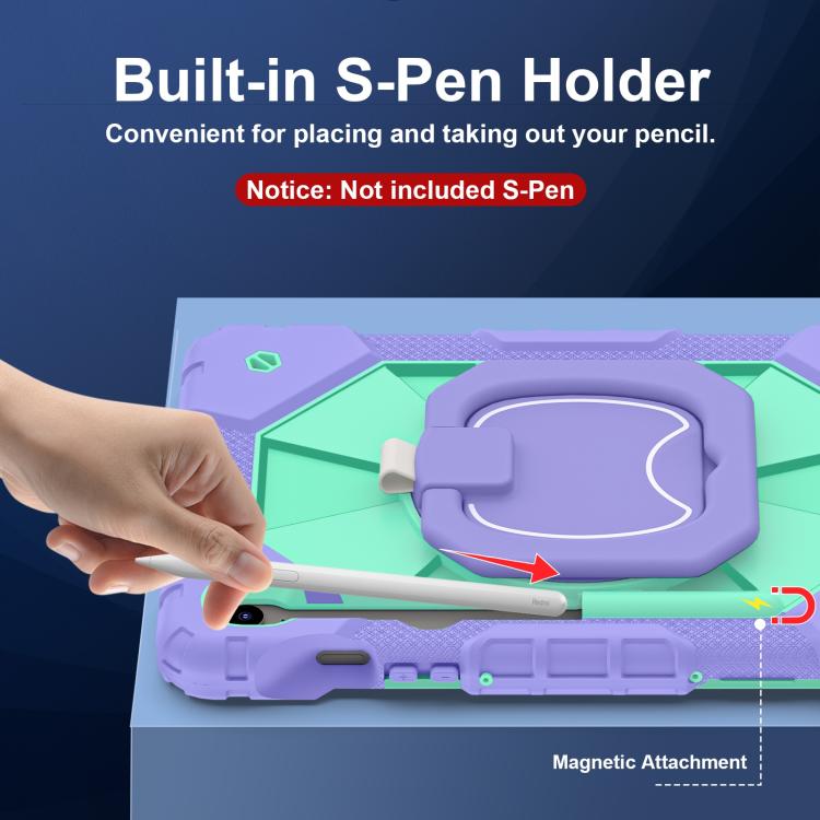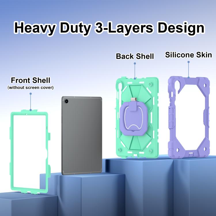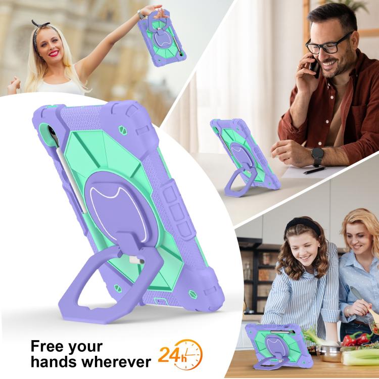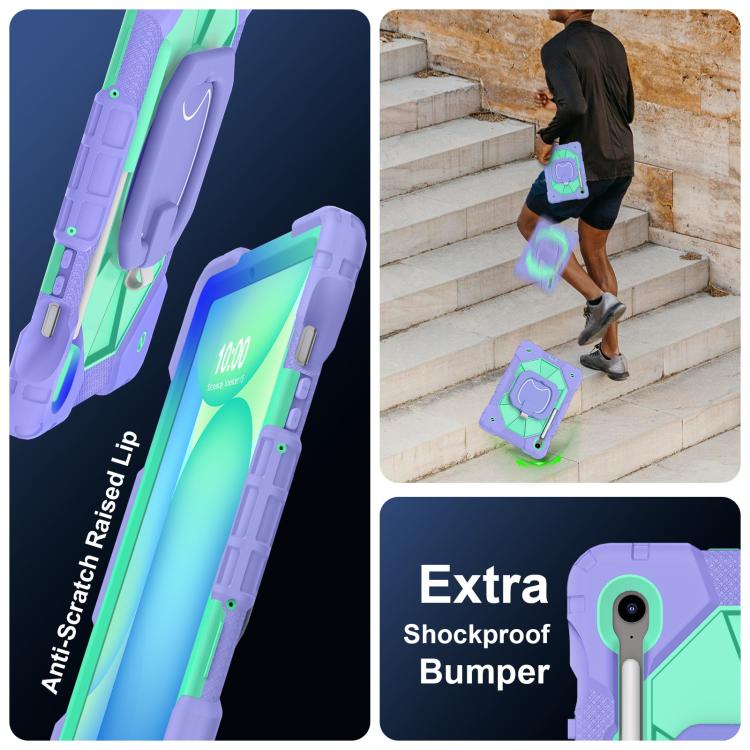 Funda híbrida de silicona con diseño de robot para Samsung Galaxy Tab S10 FE/S9 (morado y verde menta)