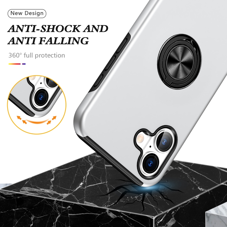 Funda híbrida TPU con Anillo Magnético para iPhone 16 Plus (Plateada)