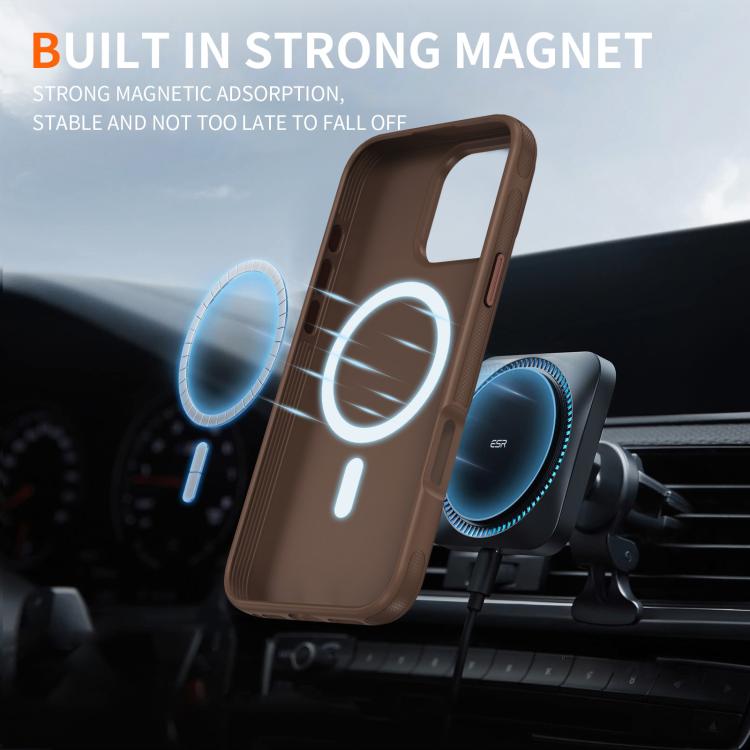 Funda híbrida de TPU Magsafe original para iPhone 16 Pro (café)