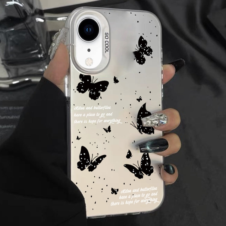 Funda híbrida TPU para iPhone Xr con pintura plateada (Mariposa de tinta blanca)