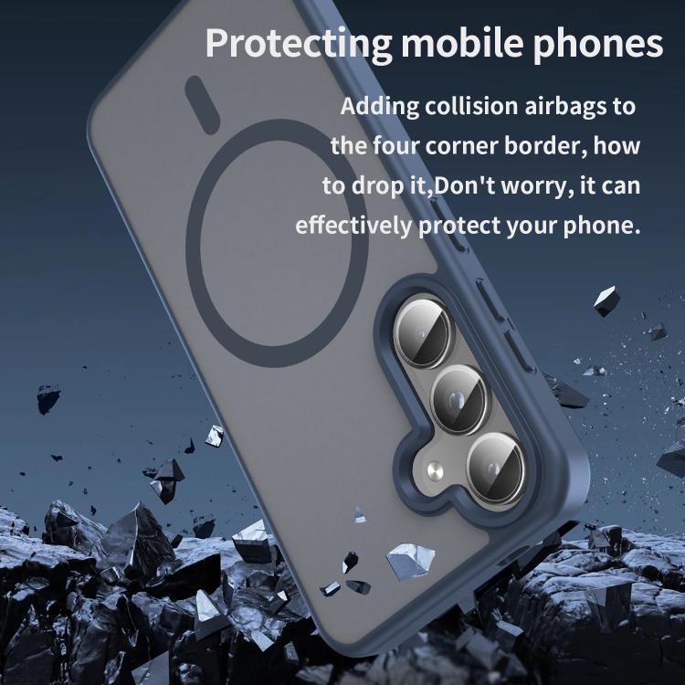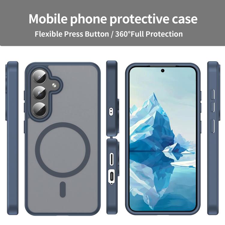 Funda híbrida de TPU translúcida con acabado MagSafe para Samsung Galaxy S25 5G (azul cian)