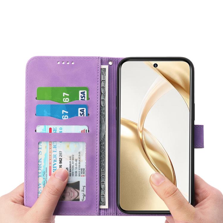 Funda híbrida de TPU y cuero sintético Dierfeng Dream Line para Huawei nova 14 Pro (morada)