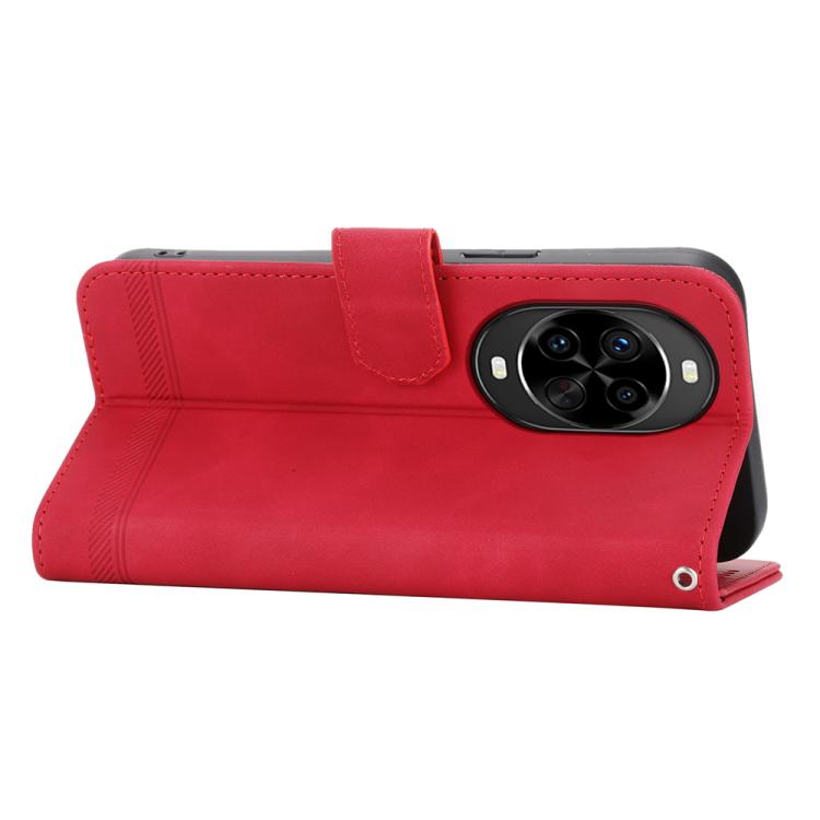 Funda híbrida de TPU y cuero sintético Dierfeng Dream Line para Huawei nova 14 Pro (roja)