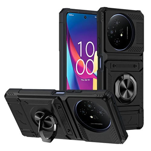 Funda Híbrida TPU y PC para TCL 50 Xl 5G con Soporte de Anillo de Metal (Negro)