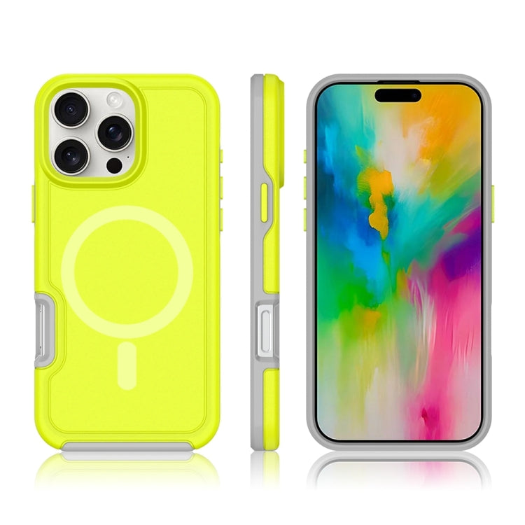 Funda híbrida TPU y PC para iPhone 16 Pro Max con Protección Magsafe a prueba de golpes (Verde Fluorescente y Gris)