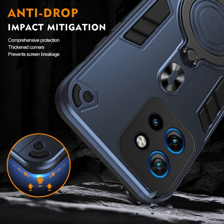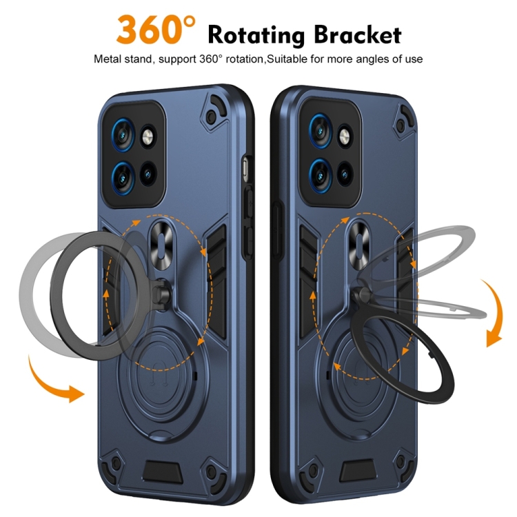 Funda Híbrida TPU y PC con Soporte Giratorio 360° para Motorola Edge 50 Neo (Azul Marino)