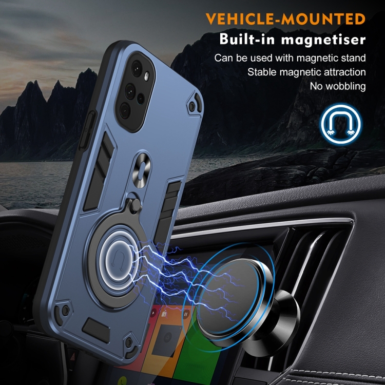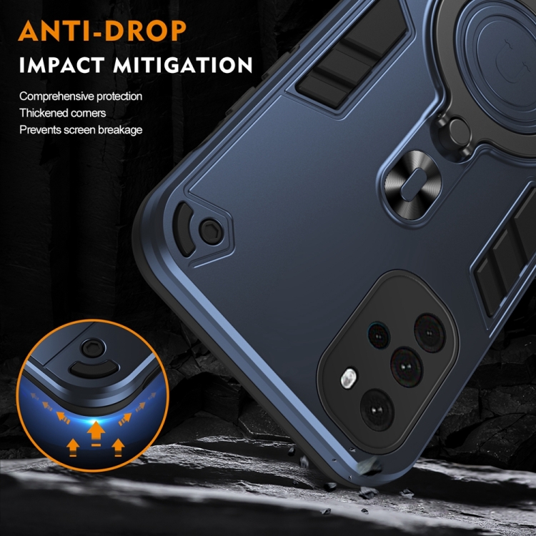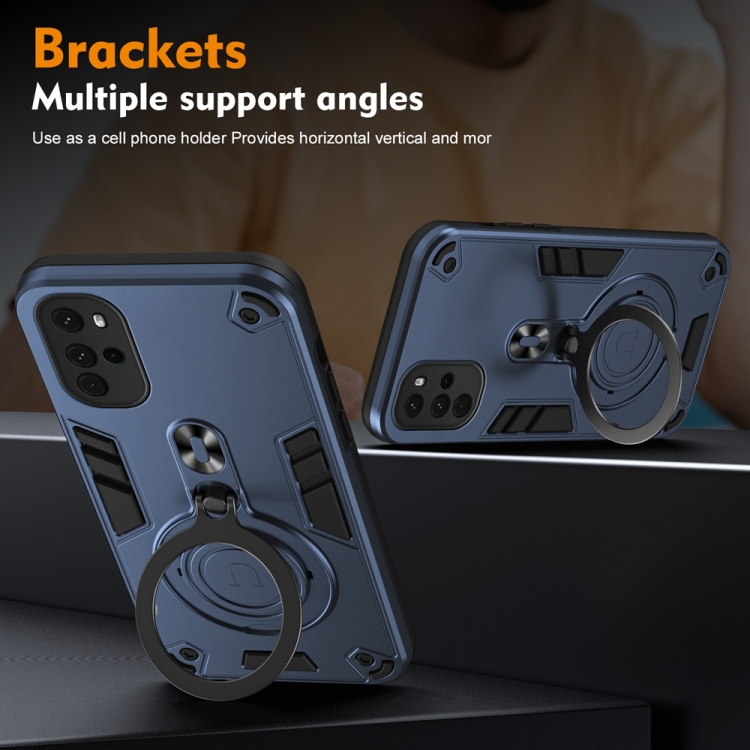 Funda Híbrida TPU y PC con Soporte Giratorio 360° para Motorola Moto G22 (Azul Marino)