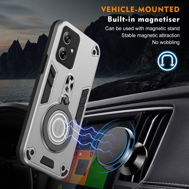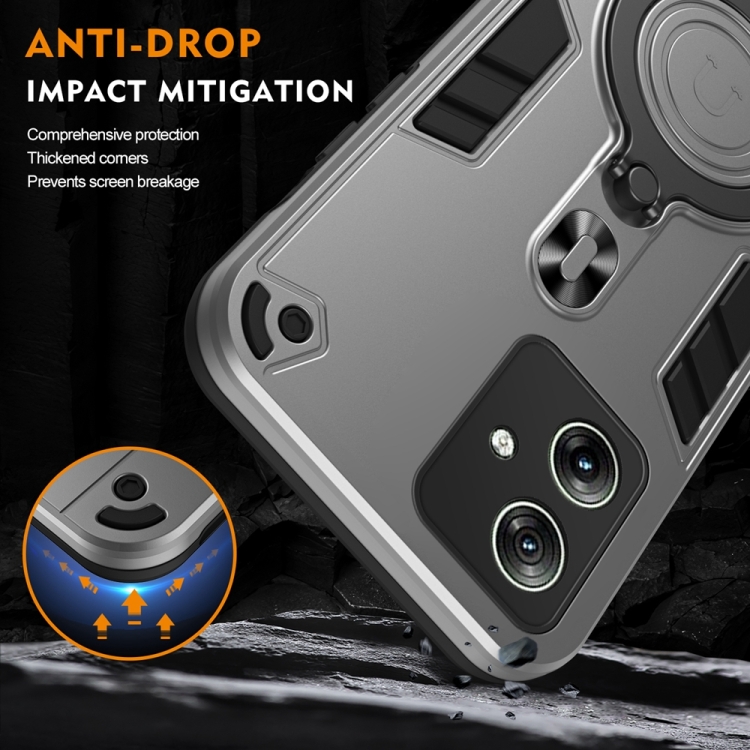 Funda híbrida TPU y PC con soporte giratorio 360° para Motorola Moto G54 (Gris Plateado)