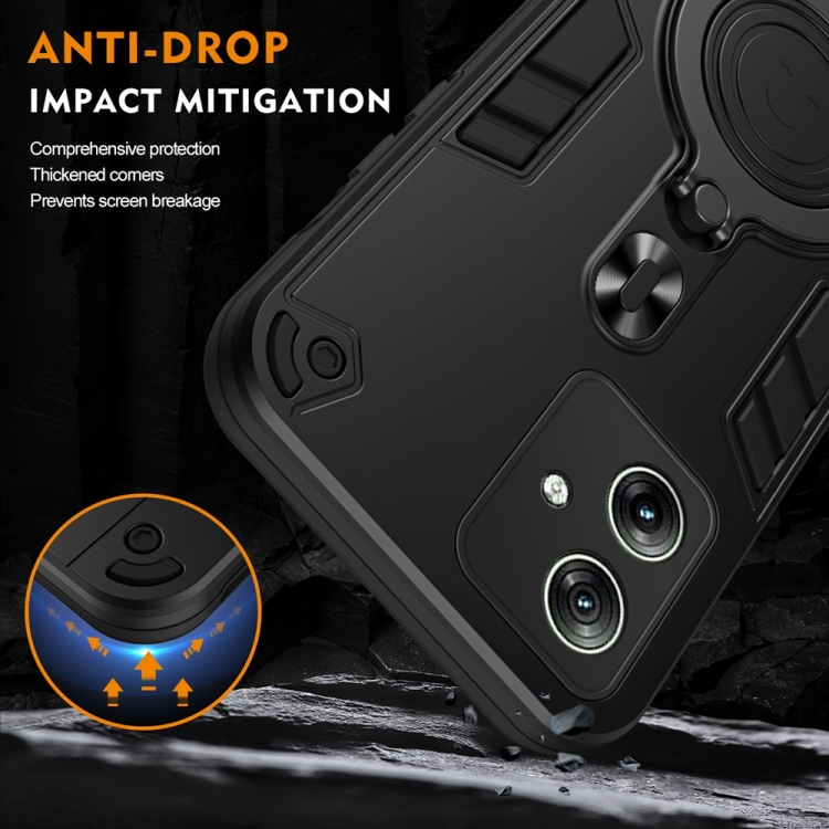 Funda híbrida TPU y PC con soporte giratorio 360° para Motorola Moto G54 (Negro)