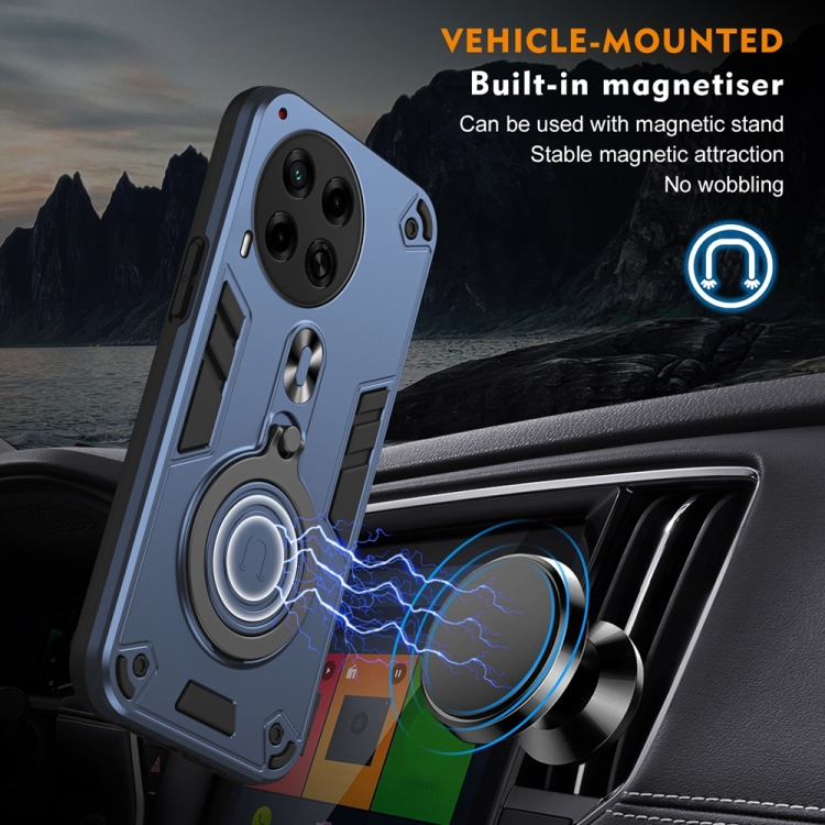 Funda híbrida TPU y PC con soporte giratorio 360 grados para Tecno Camon 30 4G (Azul Marino)
