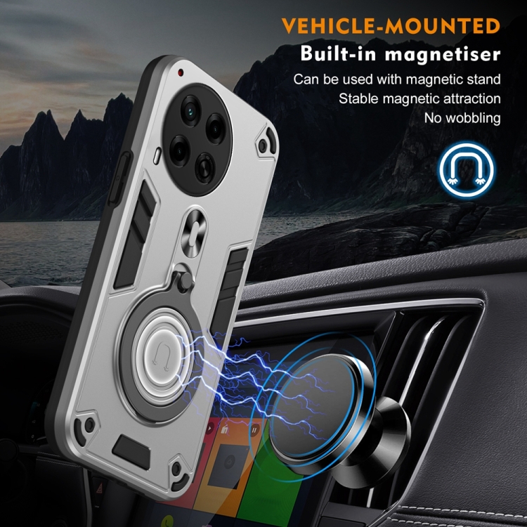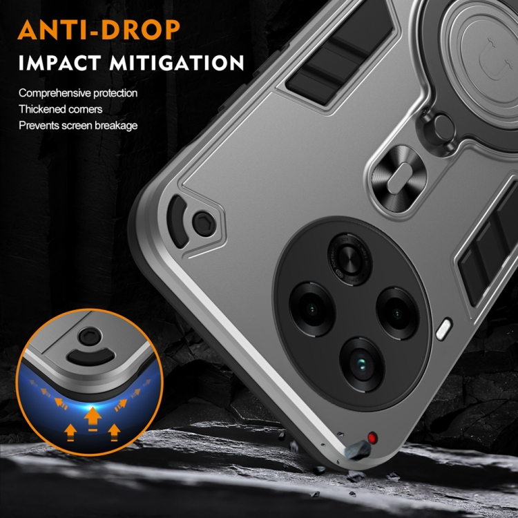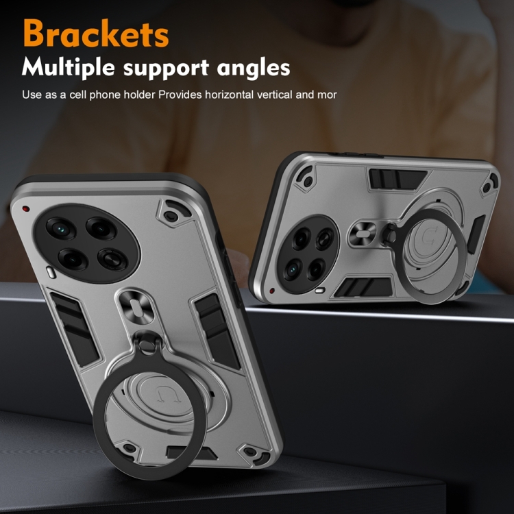Funda Híbrida TPU y PC con Soporte Giratorio 360° para Tecno Camon 30 4G (Gris Plateado)