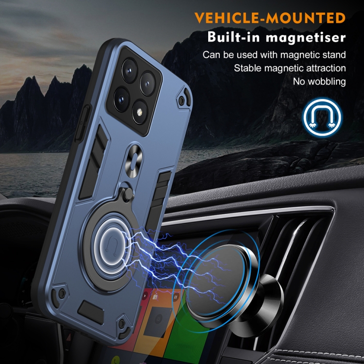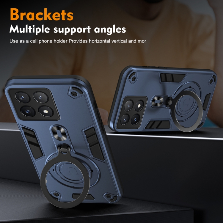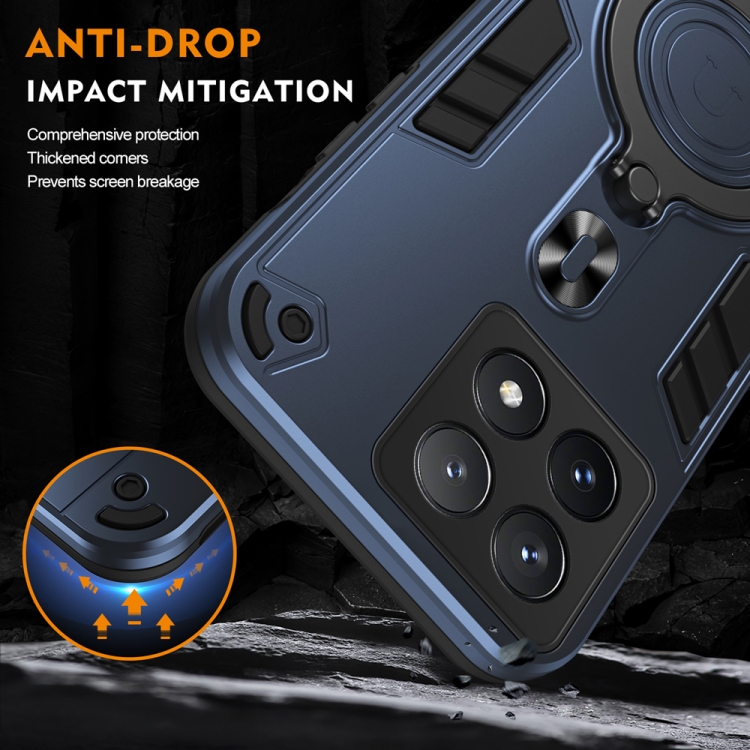 Funda Híbrida de TPU y PC con Soporte Giratorio de 360 Grados para Xiaomi Poco X6 Pro 5G (Azul Marino)