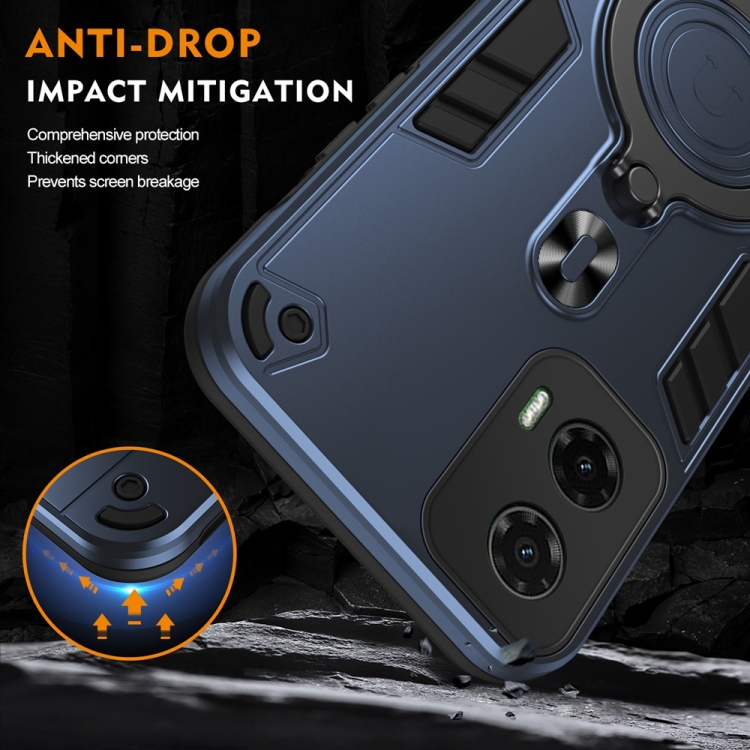 Funda híbrida TPU y PC con soporte giratorio 360° y anillo metal para Motorola Moto G35 (Azul Marino)