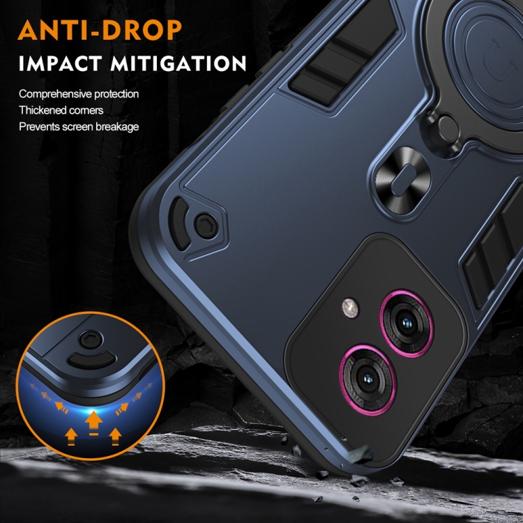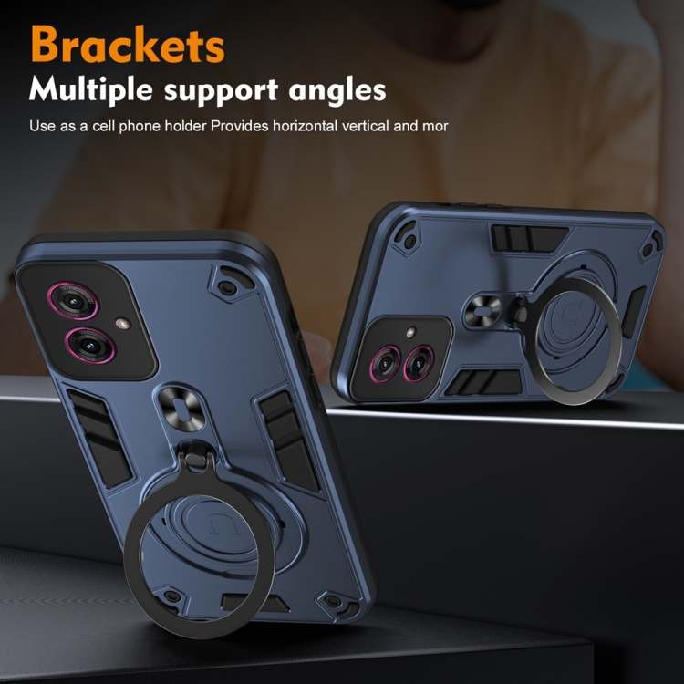Funda Híbrida TPU y PC Motorola Moto G55 con Soporte Giratorio 360° y Anillo Metal (Azul Marino)