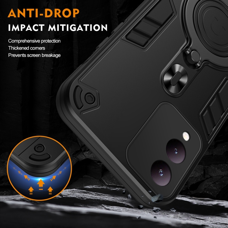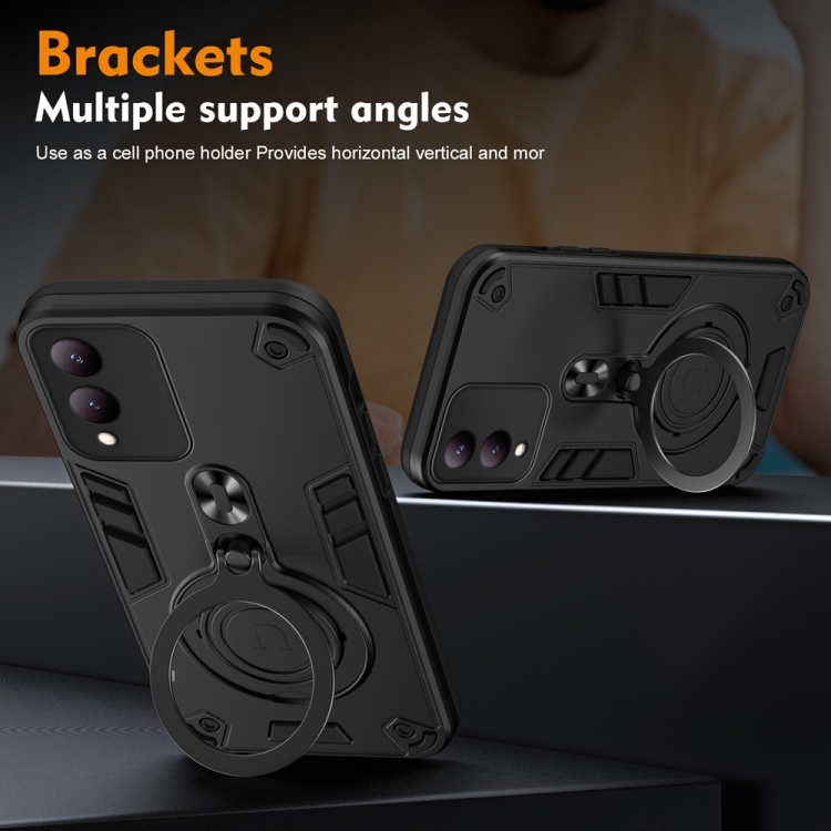 Funda Híbrida de TPU y PC con Soporte Giratorio de 360 Grados y Anillo de Metal para Vivo Y17S (Negro)