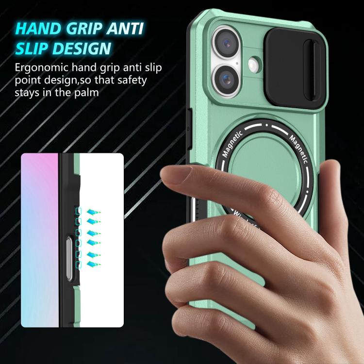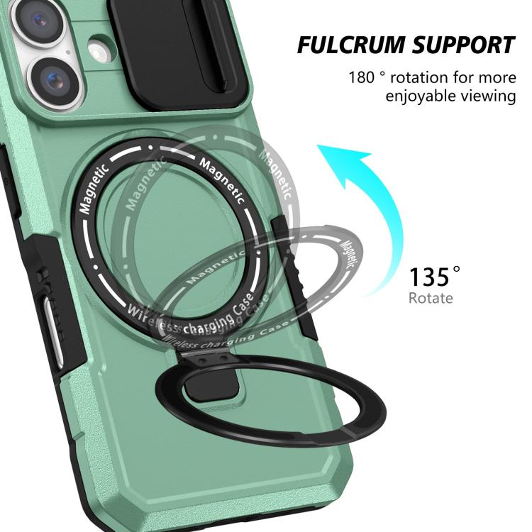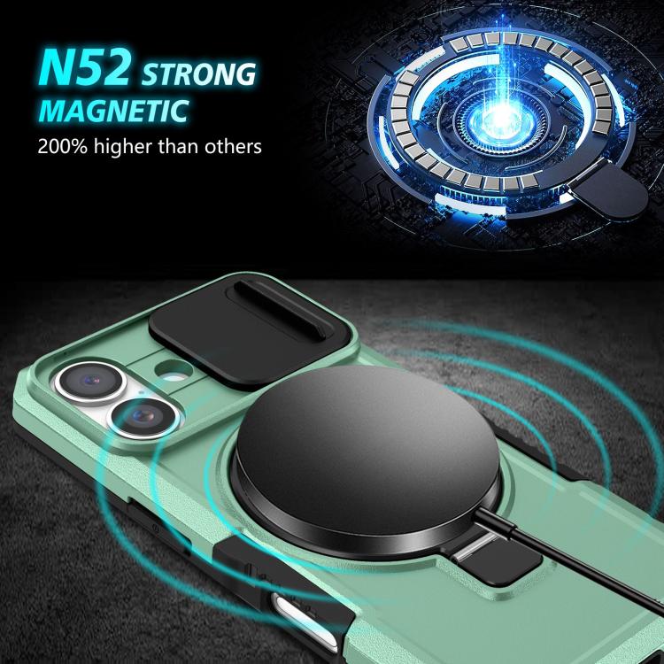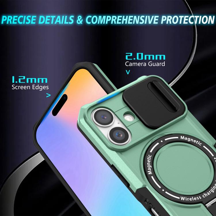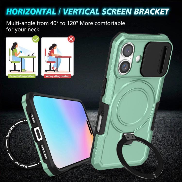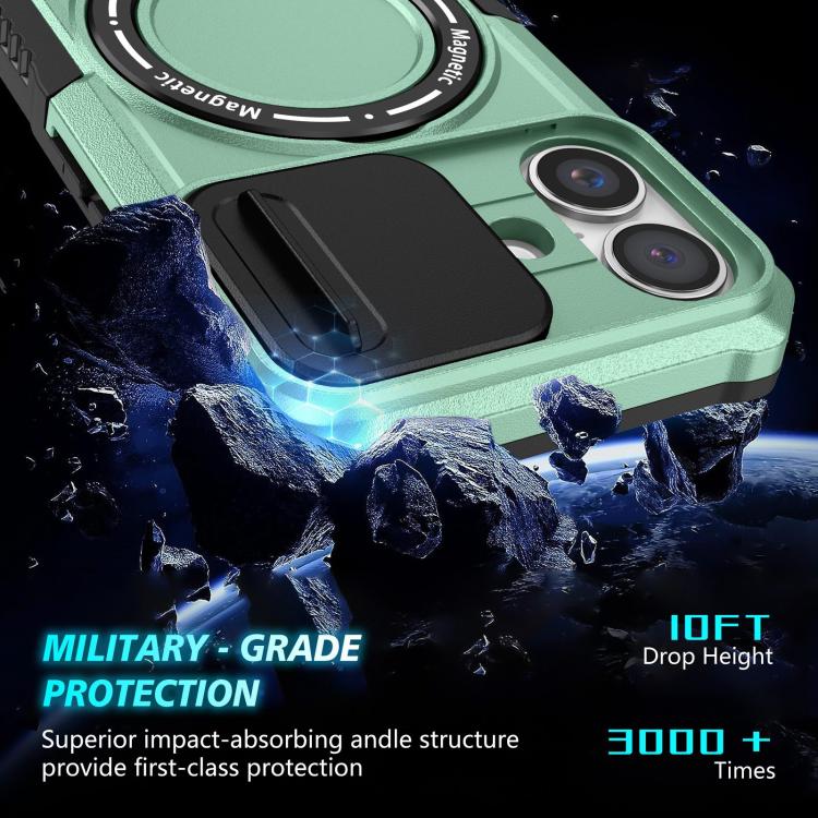 Funda híbrida TPU y PC con soporte Magsafe y protección deslizante para iPhone 16 (Azul Claro)