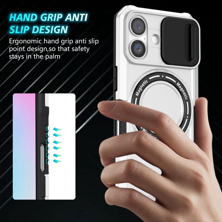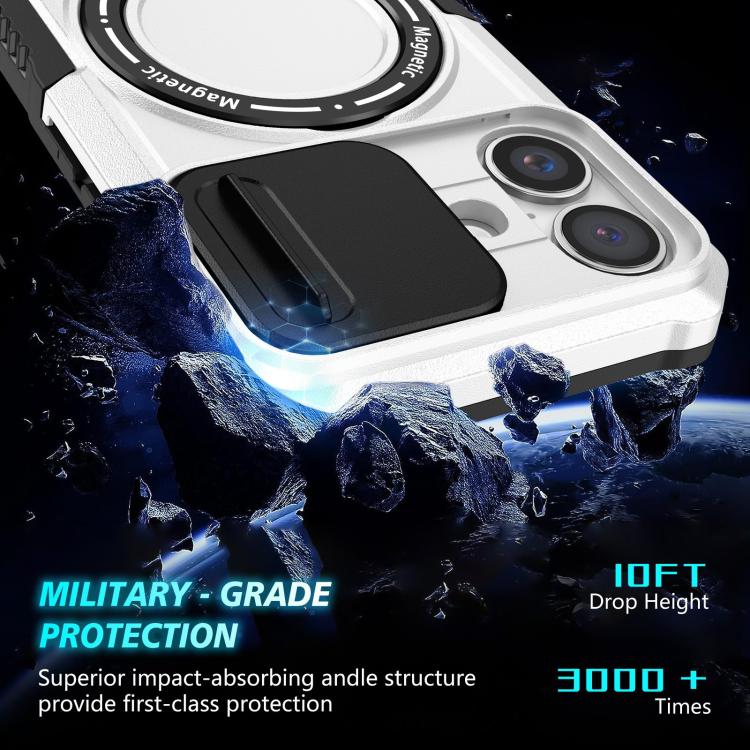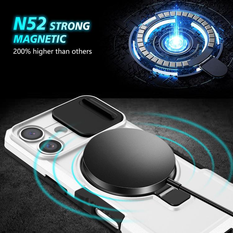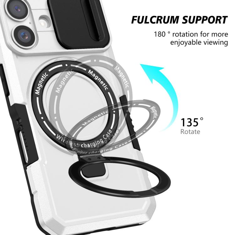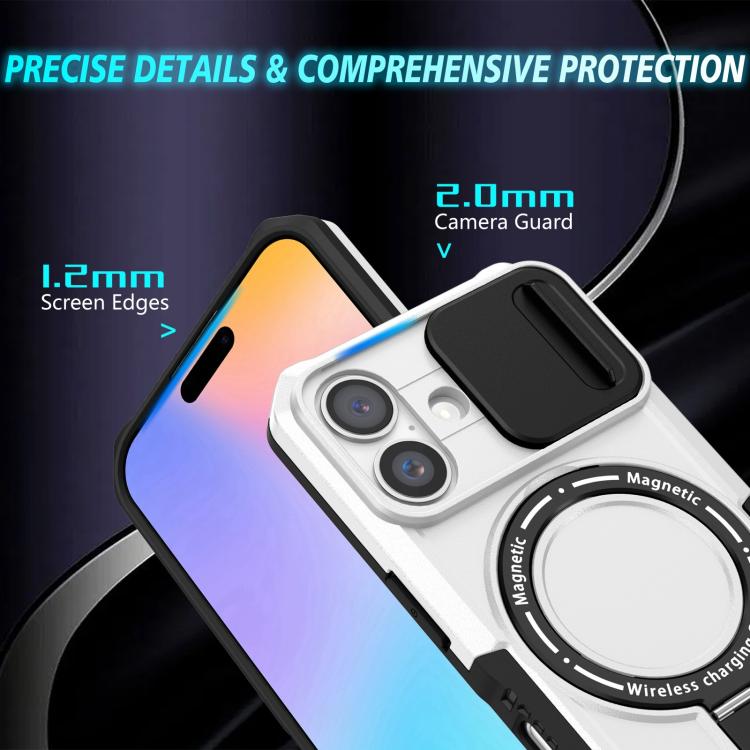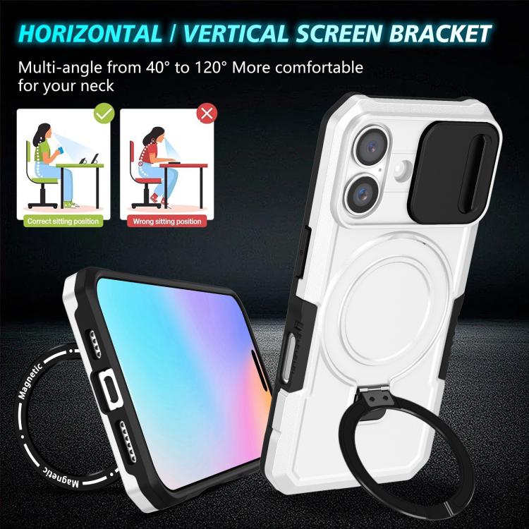Funda híbrida TPU y PC con soporte Magsafe y protección deslizante para iPhone 16 (Negro y Blanco)