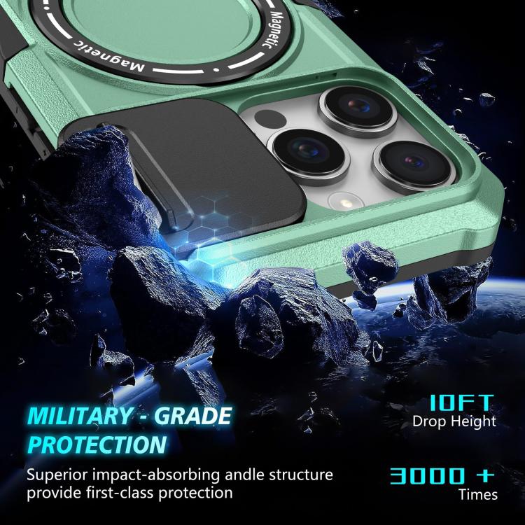Funda híbrida TPU y PC con soporte Magsafe y protección deslizante para iPhone 16 Pro (Azul Claro)