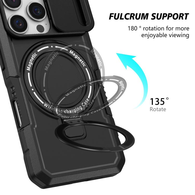 Funda híbrida TPU y PC con soporte Magsafe y protección deslizante para iPhone 16 Pro Max (Negra)