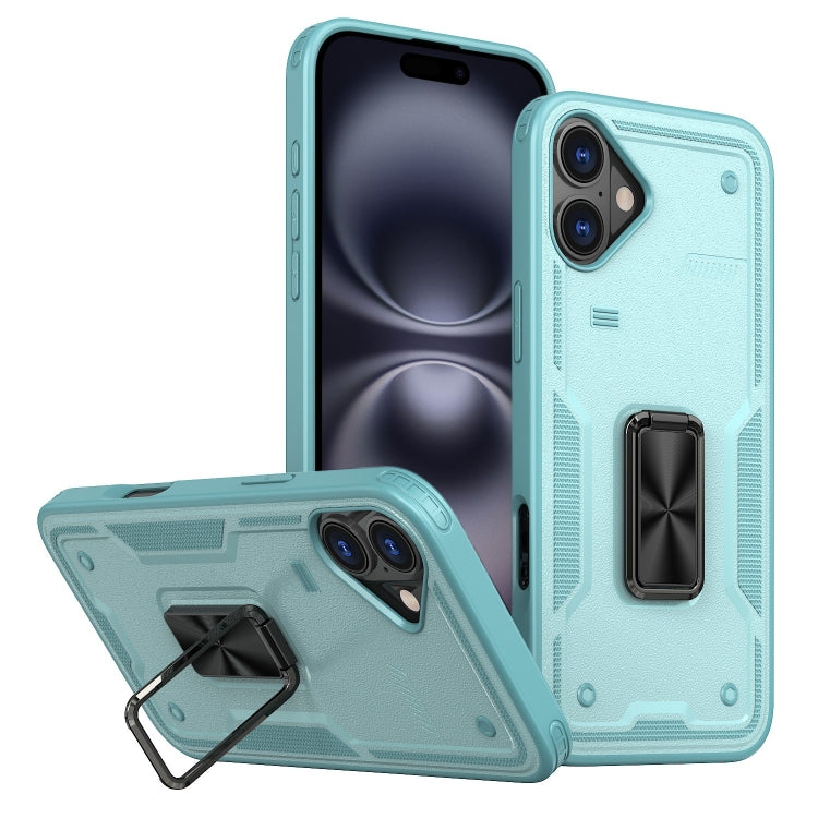 Funda híbrida TPU y PC con soporte para anillo iPhone 16 (Azul)
