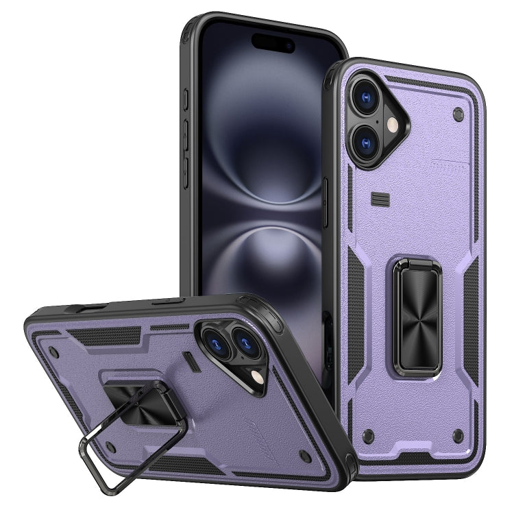 Funda híbrida TPU y PC con soporte para anillo iPhone 16 (Morado)