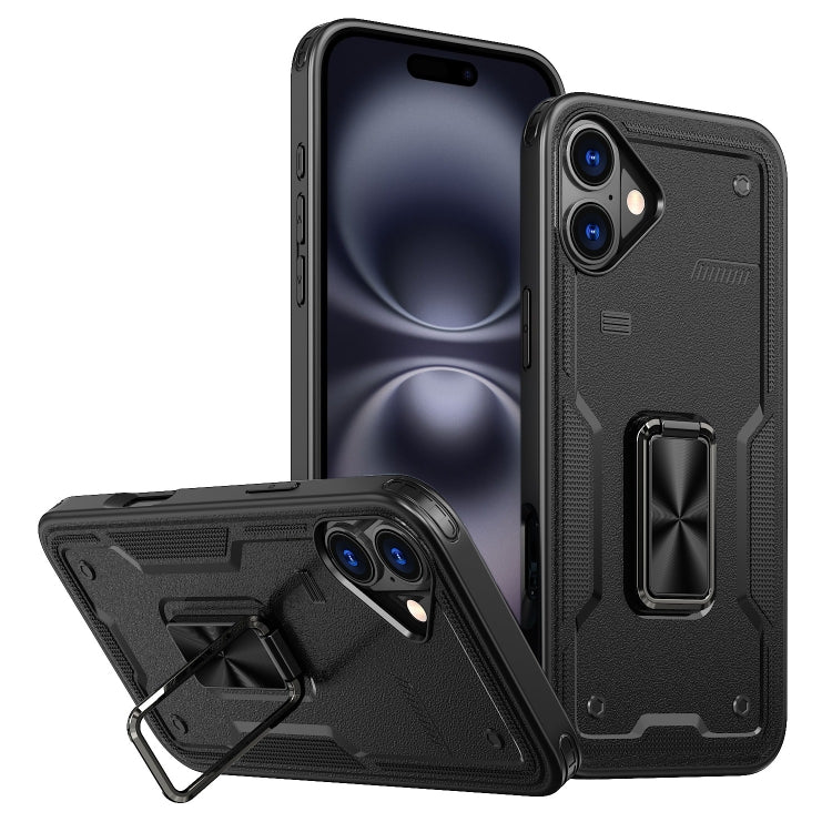 Funda híbrida TPU y PC con soporte para anillo iPhone 16 (Negra)