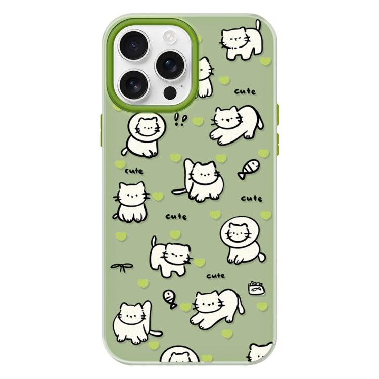 Funda híbrida TPU y PC para iPhone 16 Pro (Corazón Verde, Gato Verde)