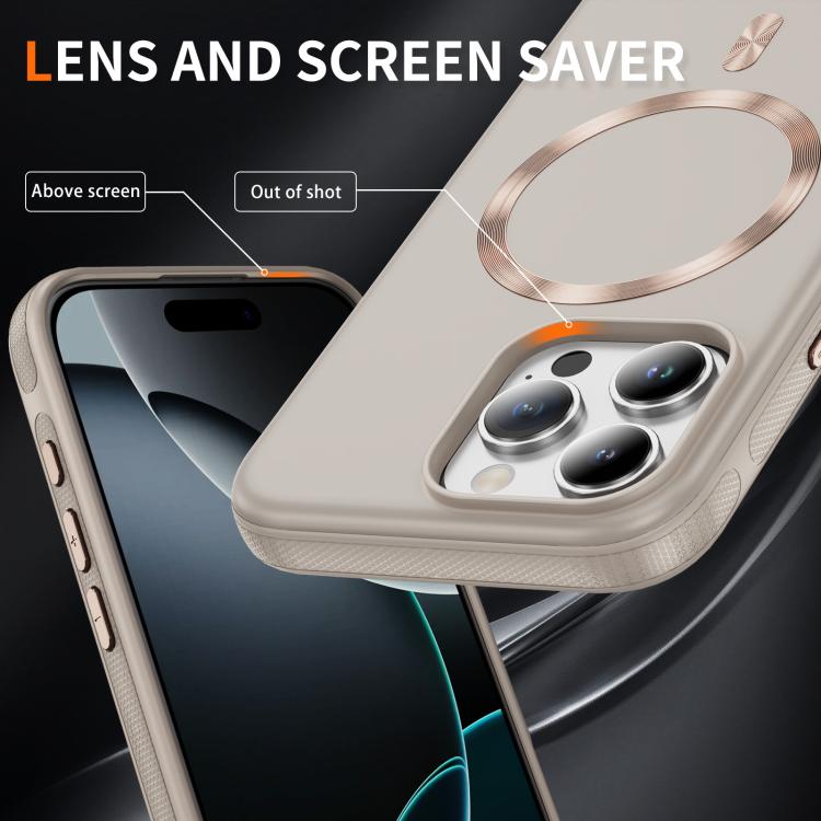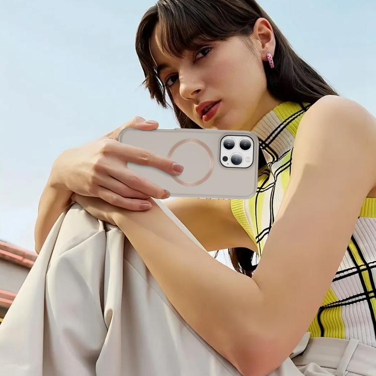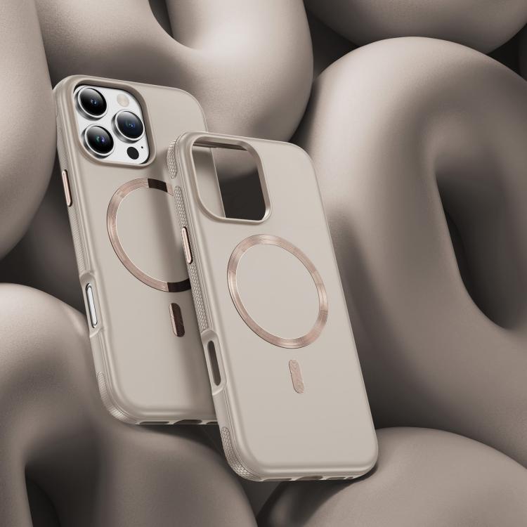Funda híbrida de TPU y PC Magsafe con textura de CD original para iPhone 16 Pro (beige y gris)