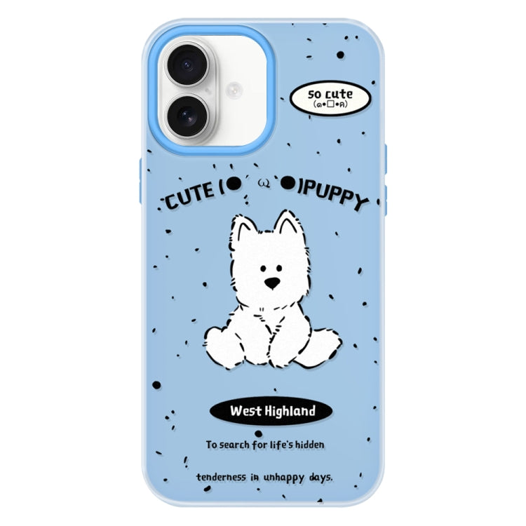 Funda híbrida TPU y Policarbonato iPhone 16 Línea Azul Perro