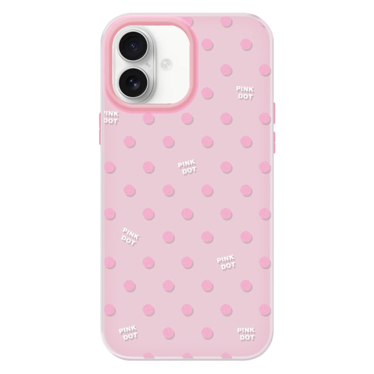 Funda híbrida TPU y Policarbonato iPhone 16 con Tacto Sedoso (Lunares Rosa)