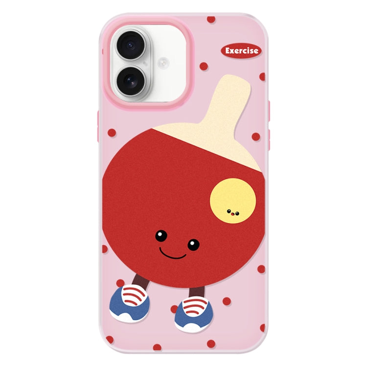 Funda híbrida TPU y Policarbonato iPhone 16 Tacto Sedoso (Rosa) con Diseño de Ping Pong